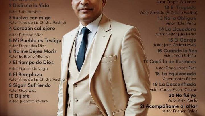 Los 21 tracks prometen un recorrido emocional y narrativo a través de historias de amor y vivencias, con títulos destacados como “Te lo Prometo”, “Disfruta la Vida”, “Corazón Callejero”, “Tres Amores” y “Castillo de Ilusiones”.